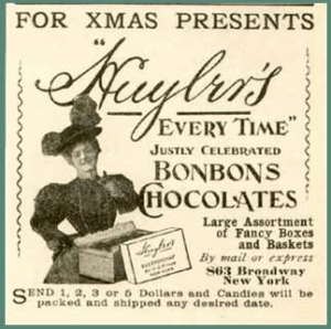 Working on his own to develop an old-fashioned molasses candy, John S. Huyler opened his first store in 1876 on 18th Street in New York City. A few years later he opened three additional shops — another in Manhattan, one in Brooklyn, and one in Albany. Huyler’s candy had started its rise to national prominence. When he died on October 1, 1910, Huyler had 54 stores across America, supplied by his 14 candy factories employing about 2,000 people.